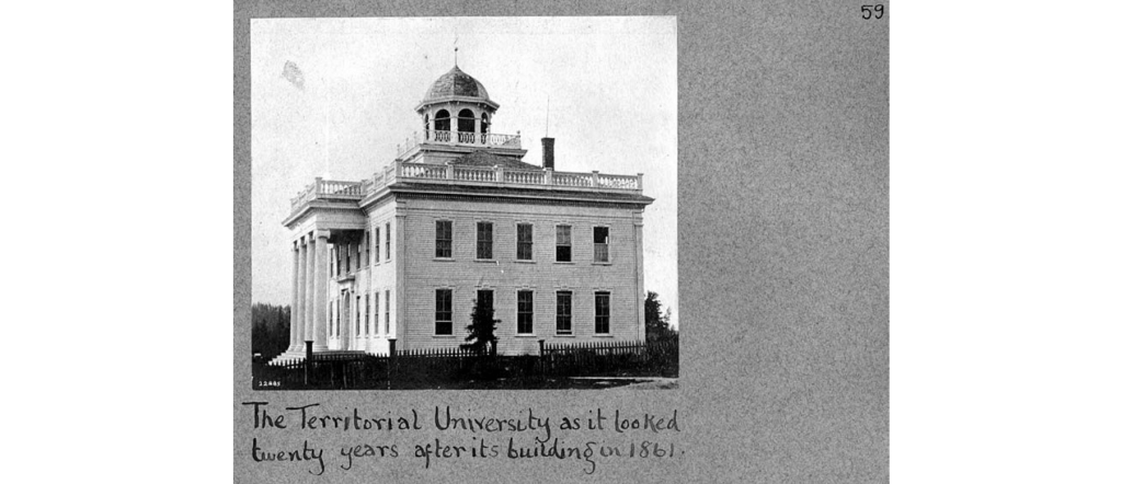 Territorial University (later the University of Washington) building, 5th Ave. and University St, ca. 1881. University of Washington Libraries, Special Collections, Prosch Seattle Views Album, Vol. 2, page 59.