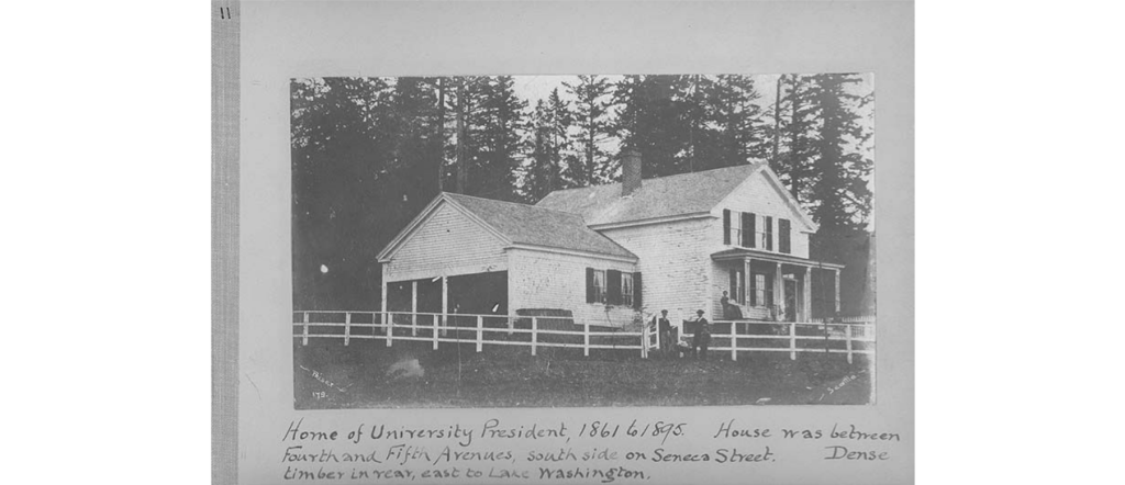 Territorial University president’s house, photographed by Theodore E.Peiser between 1861 and 1906. University of Washington Libraries, Special Collections, Prosch Seattle Views Album, Vol. 1, page 11